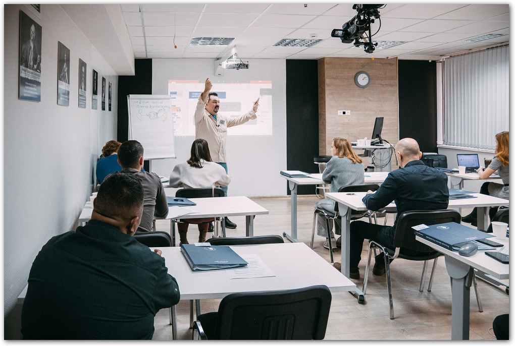 Я обычно учусь онлайн, но из офиса. Этот формат намного удобнее, чем офлайн. Учеба в РШУ проходит с 9:00 до 14:30, а после этого можно заниматься своей работой, не теряя контакт с коллегами и не выпадая из проектов. Даже в случае непредвиденных обстоятельств (например, больничного) можно слушать курс из дома, подключившись к уроку.