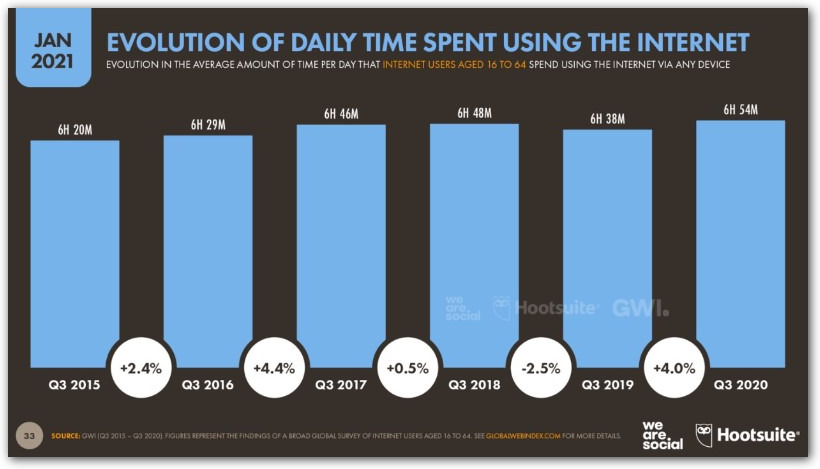 Интернет. В среднем человек проводит семь часов в интернете — это около 40% времени бодрствования.